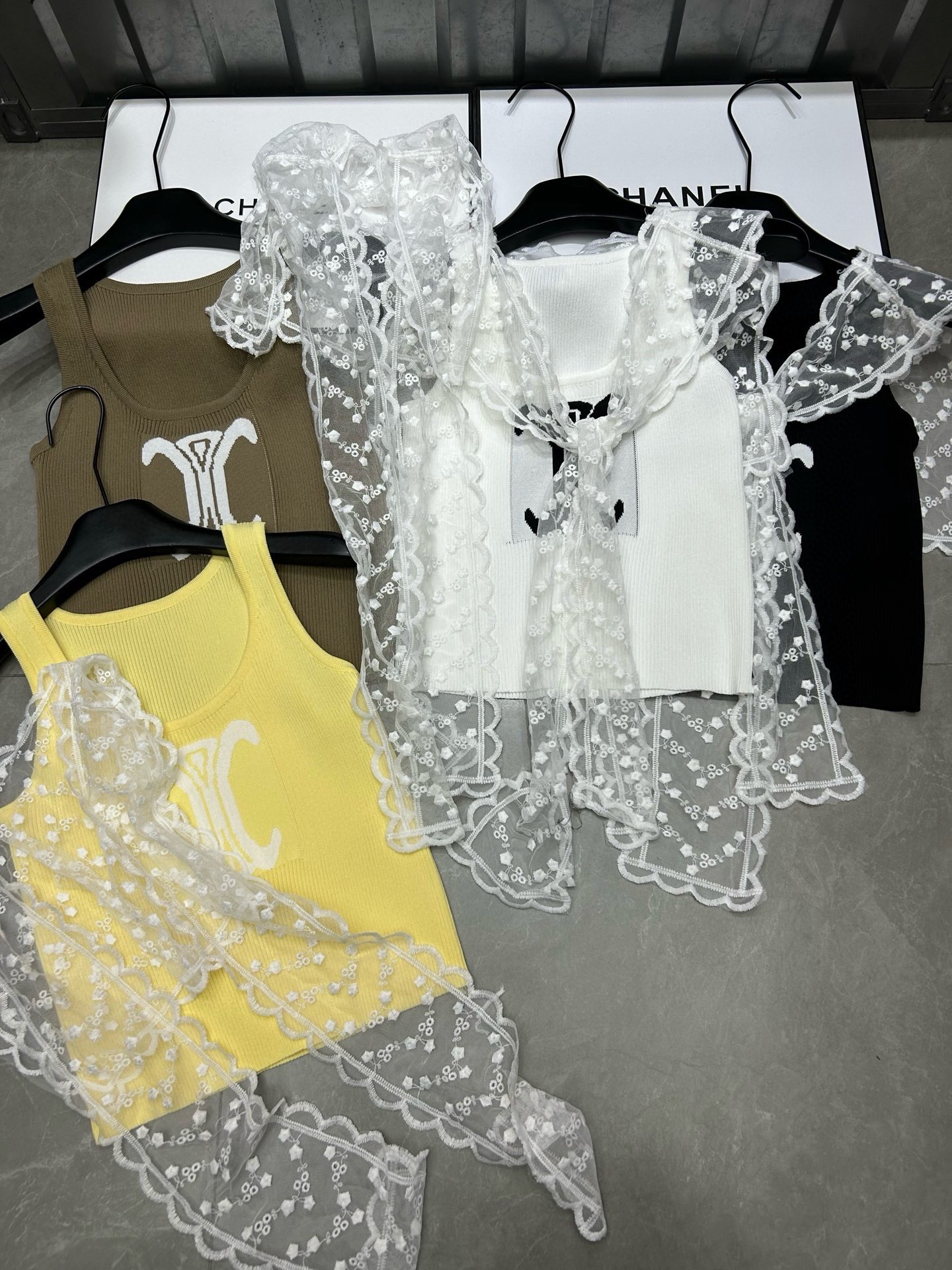 Celine Arc de Triomphe Jacquard Knit Vest with Lace Shawl