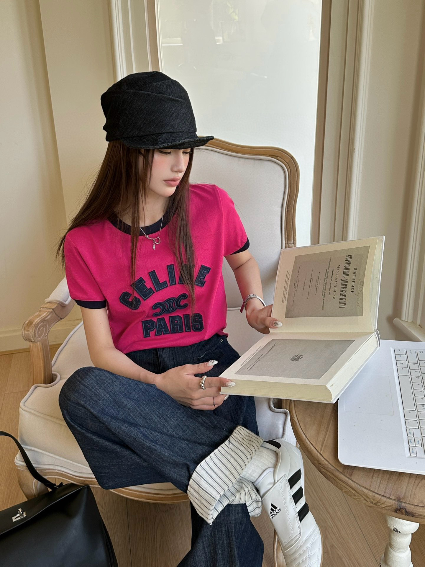 High Quality Celine Short Sleeves White Embroidery Luxury