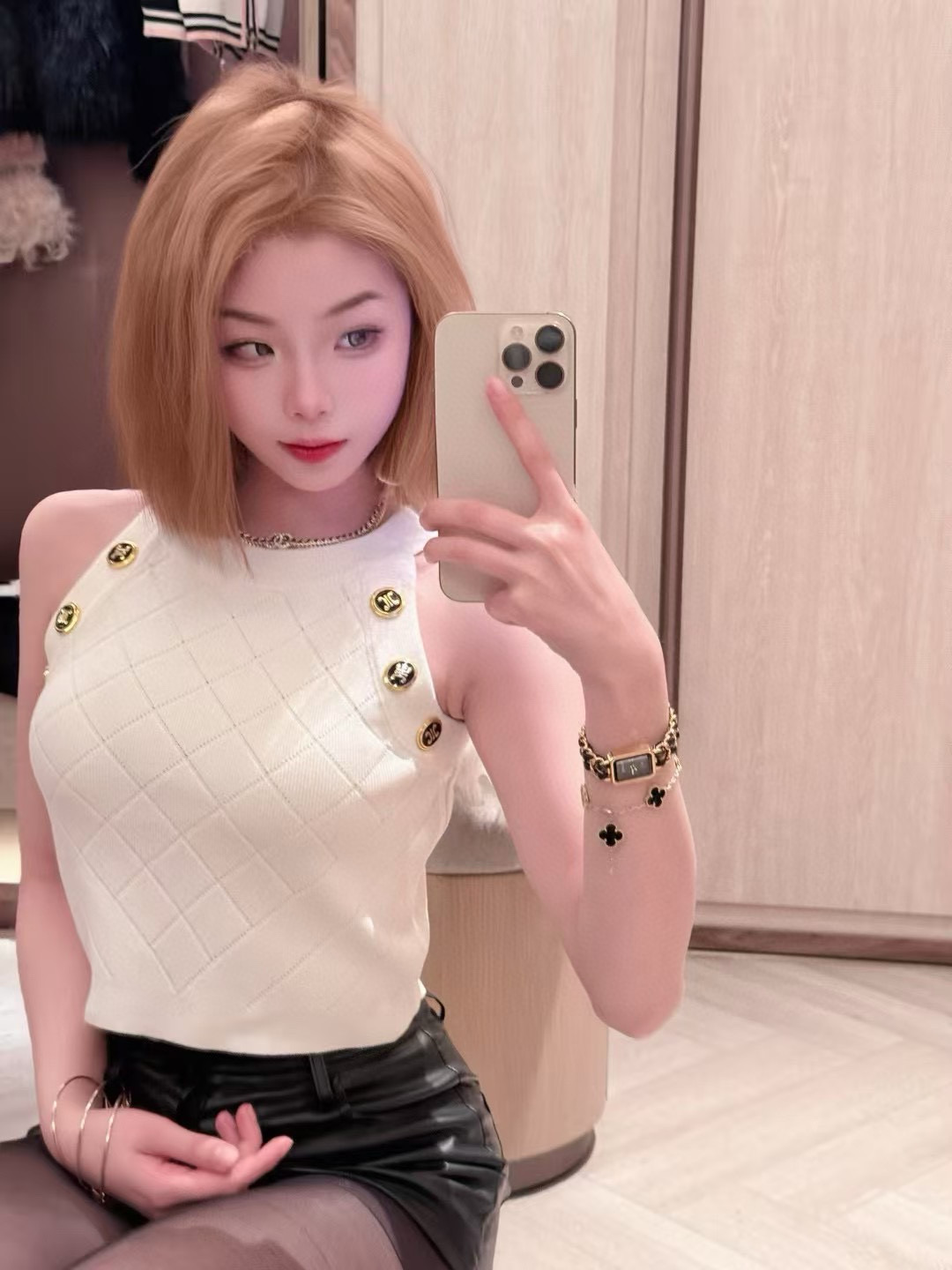 Celine Custom Arc de Triomphe Button-Designed Diamond-Quartzed Hollow-Neck Knit Vest