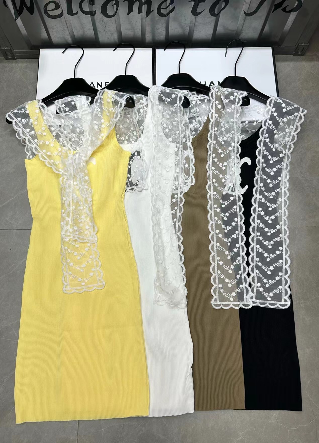 Celine Arc de Triomphe Jacquard Knit Vest Dress with Lace Shawl