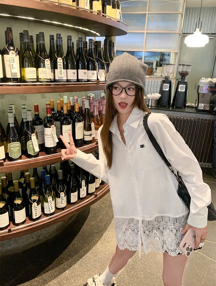 CELIN*/Cerlin Lace Panel Shirt! White shirt with lace panels at the hem and Arc de Triomphe logo embroidery on the pockets!