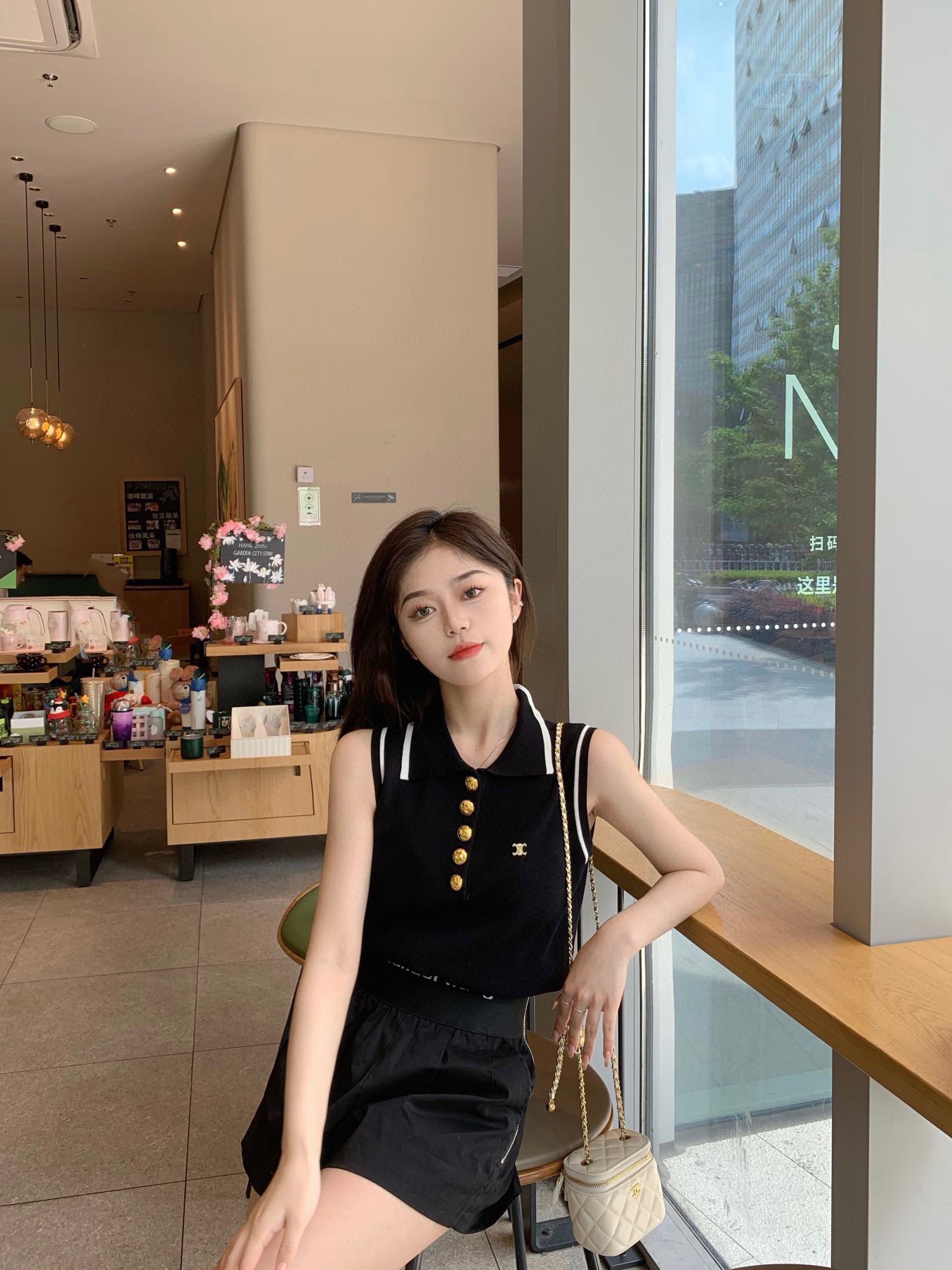 */SS New Spring/Summer Arrival! Arc de Triomphe Lapel Button-Breasted Vest. The polo lapel is youthful and vibrant, evoking a youthful and energetic vibe. The loose silhouette offers a comfortable, relaxed fit, enhancing layering while maintaining a defined silhouette. Available in black and red.