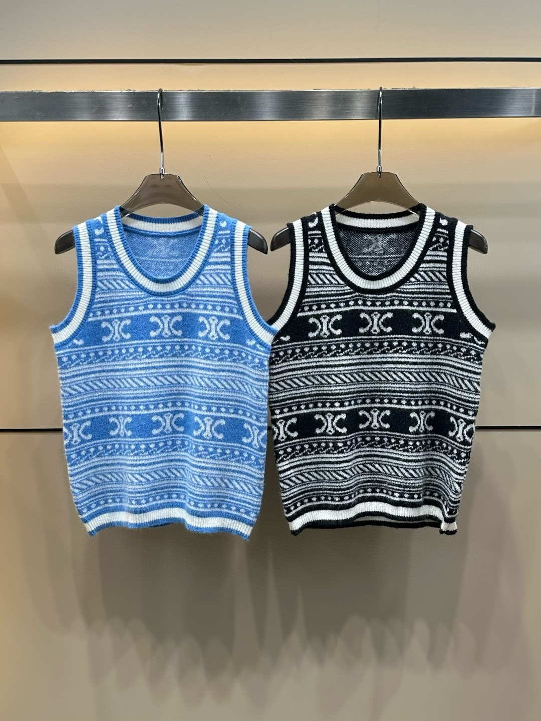 Premium Quality Celine Vest Blue Knit Jacquard Collection