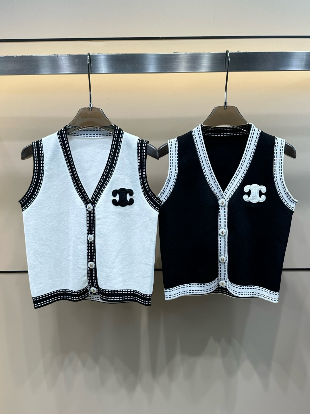 Premium Quality Celine Vest White Knit Embroidered Style